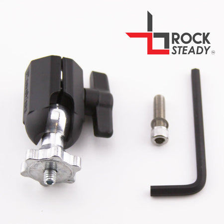 The Rock Steady ball mount is the durable and versatile low profile design that you have been looking for. This quality all metal mount will not move, bend, or fail, unlike plastic mounts. The knuckle clamp attaches to any Rock Steady base allowing 360 degrees of adjustment. The knuckle locks your camera into any position with a hex wrench, or by hand with an included T-handle screw. Buy multiple Rock Steady bases to add numerous quick change mounting locations at an affordable price. The standard 1/4-20 thread is compatible with most cameras such as Drift, Flightcam, Sony, JVC, Canon, Fly360, etc.